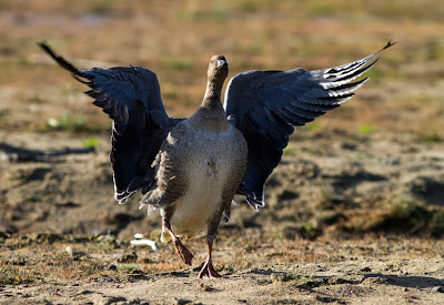 Vi var ute på en promenad på Norra Stadsberget, jag och Petra, när telefonen rang. Stefan hade tydligen en väldigt orädd spetsbergsgås på Stornäset. Vi hoppade i bilen, hem och hämtade kamera och snörade på kängorna och drog ut.